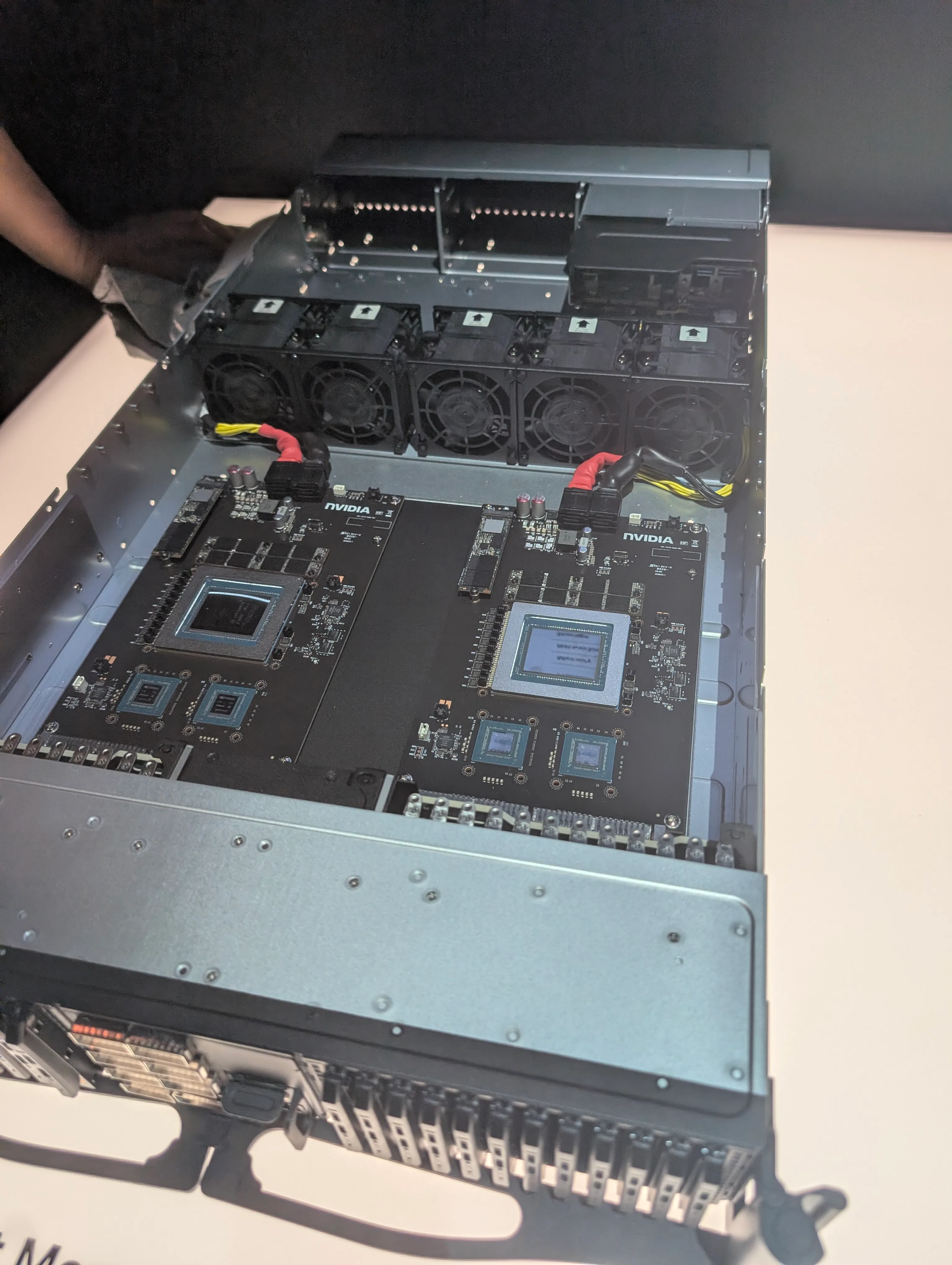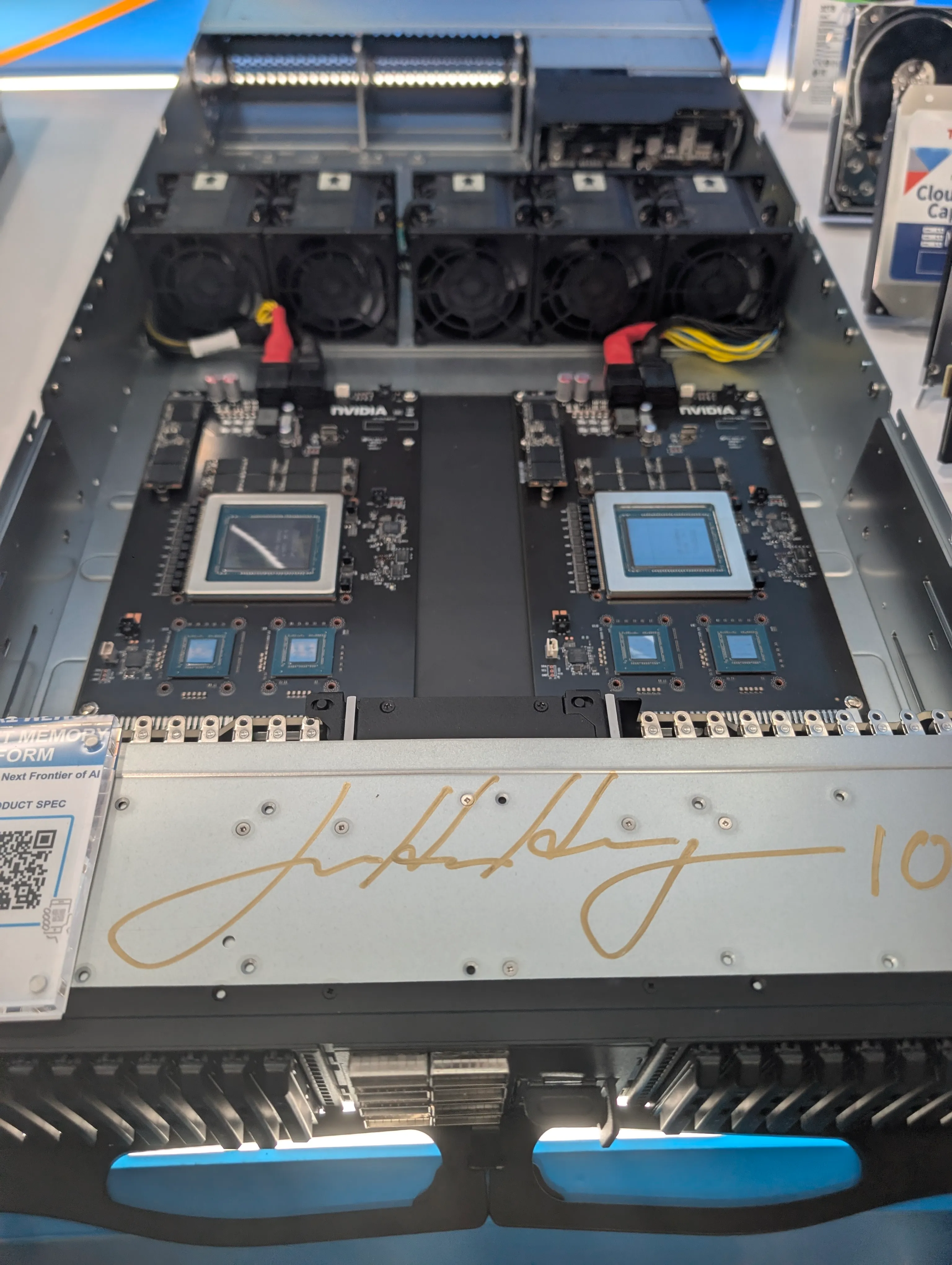 I didn’t quite get too many rack-level pictures, but here is a Vera Rubin NVL72 (72 GPUs connected with NVLink and 144 Rubin CPUs) and a Blackwell-based “A4 Max” rack from Google (which you can rent in their cloud):